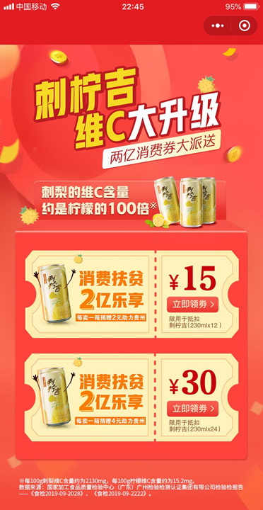 Ϊ¸üºÃ×ÊÖú¹óÖÝ´ÌÀ湤ҵÉú³¤£¬¹ãÒ©¼¯ÍÅÍõÀϼª½«°ï·ö¹óÖÝ´ÌÀ湤ҵÉú³¤µÄ´ÌÄû¼ªÏµÁвúÆ·£¬´òÔì³É¼¯“¿µ½¡¡¢·öƶ¡¢Ôö½øÏûºÄ”ÈýλһÌåµÄÈÍ·²úÆ·£¬ÒÔ¸ü´ó¿ÌÒâ¡¢¸üÇ¿Á¦¶ÈÖúÁ¦¹óÖÝÍÑÆ¶¹¥¼á¡£ÈÕǰ£¬´ÌÄû¼ª2ÒÚÔª·öƶÏûºÄȯÒÑÉÏÏß¡£ÏûºÄȯÓÐÓÃÆÚ×ÔÁìȡ֮ÈÕÆðÖÁ2020Äê6ÔÂ27ÈÕ£¬ÏûºÄÕß¿Éͨ¹ýË뿵С³ÌÐò¡¢ÍõÀϼª¹Ù·½É̳Ç΢ÐÅС³ÌÐò¡¢ÍõÀϼªÌìèÆì½¢µêµÈƽ̨ÁìÈ¡Ãæ¶îΪ15Ôª/30ÔªµÄÏûºÄȯ£¬»®·ÖÓÃÓÚ¹ºÖÃ12¹ÞÒ»Ïä/24¹ÞÒ»ÏäµÄ´ÌÄû¼ª¡£